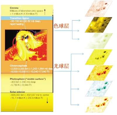 饶长辉团队突破多项关键技术,成功研制出“7波段太阳层析成像系统”,作为目前世界上波段最多的多波段层析成像系统,其探测波长分别为对应的太阳光球层、色球层底部、色球层中部和色球层顶部。