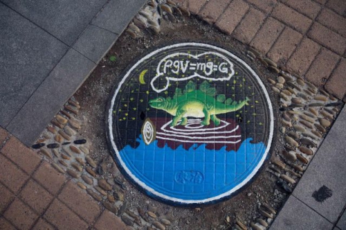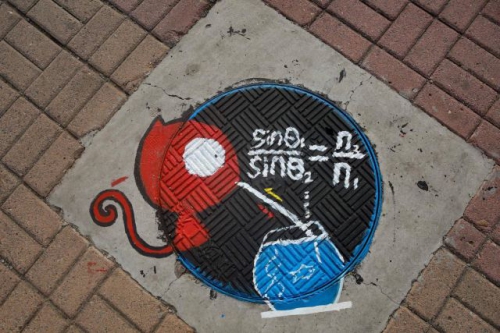 中国科学院物理所的不少井盖近日换了“新装”,每个卡通图案对应着一个物理学公式,科学与艺术在24个井盖上碰撞出有趣的火花。