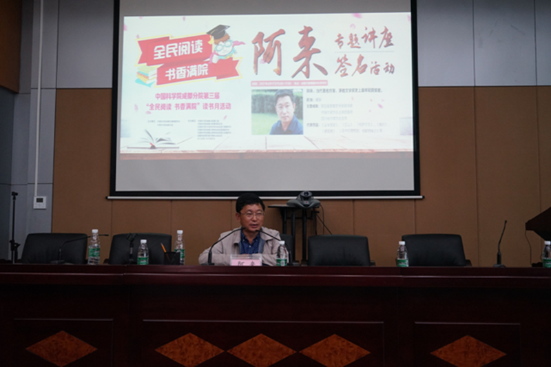 4月17日下午,当代著名作家、茅盾文学奖史上最年轻获奖者、四川省作协主席阿来应邀做客中国科学院成都分院第三届“全民阅读,书香满院”读书月活动讲堂,在中科院成都文献情报中心学术厅作专题讲座。成都分院各单位职工、硕博士生、社区群众以及慕名而来的读者朋友约100多人聆听了讲座。