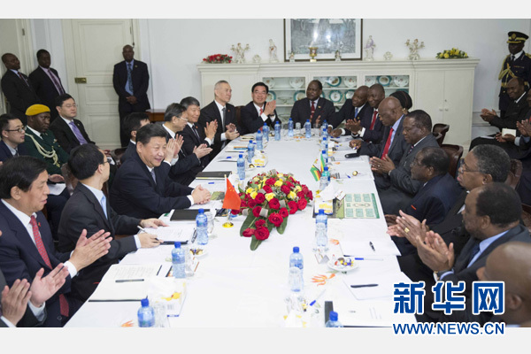 习近平指出,中国愿在发展道路上同非洲国家砥砺前行、互帮互助。我期待在即将举行的中非合作论坛约翰内斯堡峰会上同非洲朋友共商中非关系发展大计,共创中非友好合作美好未来,在中非友好合作史上树立新的里程碑。
