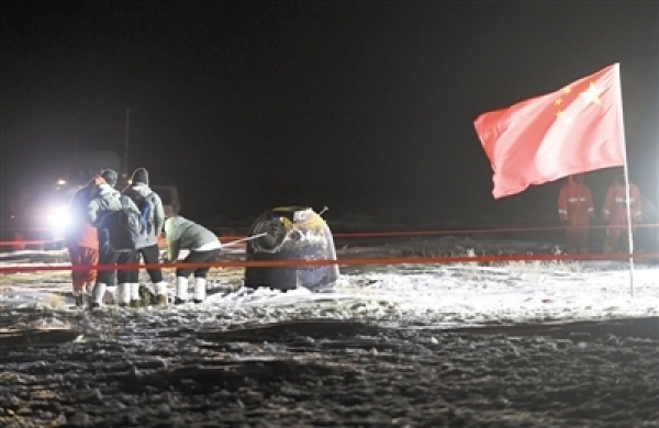 嫦娥五号在内蒙古四子王旗预定区域安全着陆。新华社记者 连振摄
