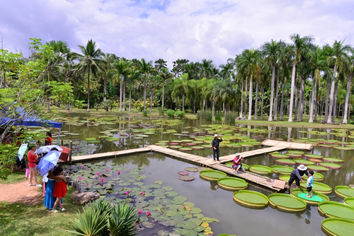 7月11日,植物园面向公众推出的“我的王莲我的船”自然体验活动迎来了首批体验者。参加体验活动的公众以家庭为单位登上竹桥,儿童在工作人员的护送中登上“王莲”宝船,家长则在一旁选择最佳角度拍摄照片,随着快门按下,一段难忘的儿时记忆定格下来。在参加体验活动的同时,体验者还从科普讲解员那里学习了王莲的“三奇”。第一奇,叶奇大。王莲的叶展可达两米以上,是挺水植物中叶片最大的。第二奇,花奇特。王莲硕大秀美的花有奇特的避免自花授粉的机制。王莲花第一天是洁白的雌性花,第二天逐渐变为粉红色的雄性花,通过雌雄成熟时间差避免了自花授粉。第三奇,种奇多。一个王莲果实有种子300-400颗,多的可达700颗。