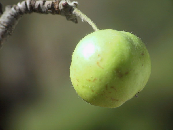 又称塞威士苹果,落叶小乔木,高达15m。树冠开阔,树皮暗灰色。嫩枝有短绒毛。叶片阔披针形或长圆状椭圆形,边缘具钝锯齿。伞房花序。花瓣粉白色。果实变异类型较多,主要有绿球果、黄球果、红球果、绿长果、黄长果和红长果等80多个野生类型。果肉也有红、黄绿或白色等多种类型。花期5月,果期7-9月。