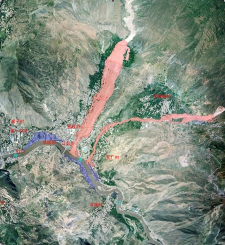 经由科研人员处理过的遥感图像,直观地显示出泥石流所流经和损毁区域。分析显示,舟曲县城主要遭受由北面罗家峪、三眼峪两条大型泥石流的冲击,造成农田及城区建筑物的严重损毁,航空遥感数据解译泥石流淹没面积约达0.44平方公里。泥石流灾害造成县城白龙江下游堵塞,形成了约0.13平方公里的堰塞湖,造成县城部分区域淹没。