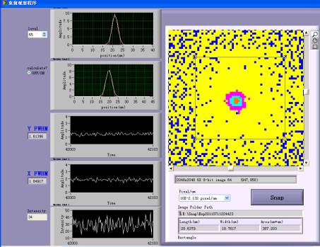 图1 倒置荧光显微镜在线观察并测量空气中束斑尺寸