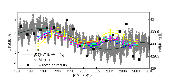 通常人们对地球深部结构的认识主要来自地震技术,近几十年内发展起来的大地测量技术(包括高精度GWR超导重力仪SG和甚长基线干涉测量VLBI)为获得地球深内部结构和动力学提供了十分重要的手段,目前全球SG和VLBI观测网络可为研究FCN提供高质量的观测资料。