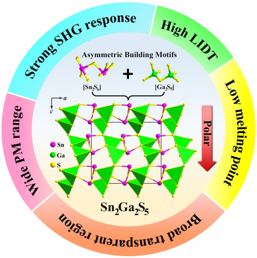 图2 综合性能优异的MFIR-NLO晶体材料Sn2Ga2S5