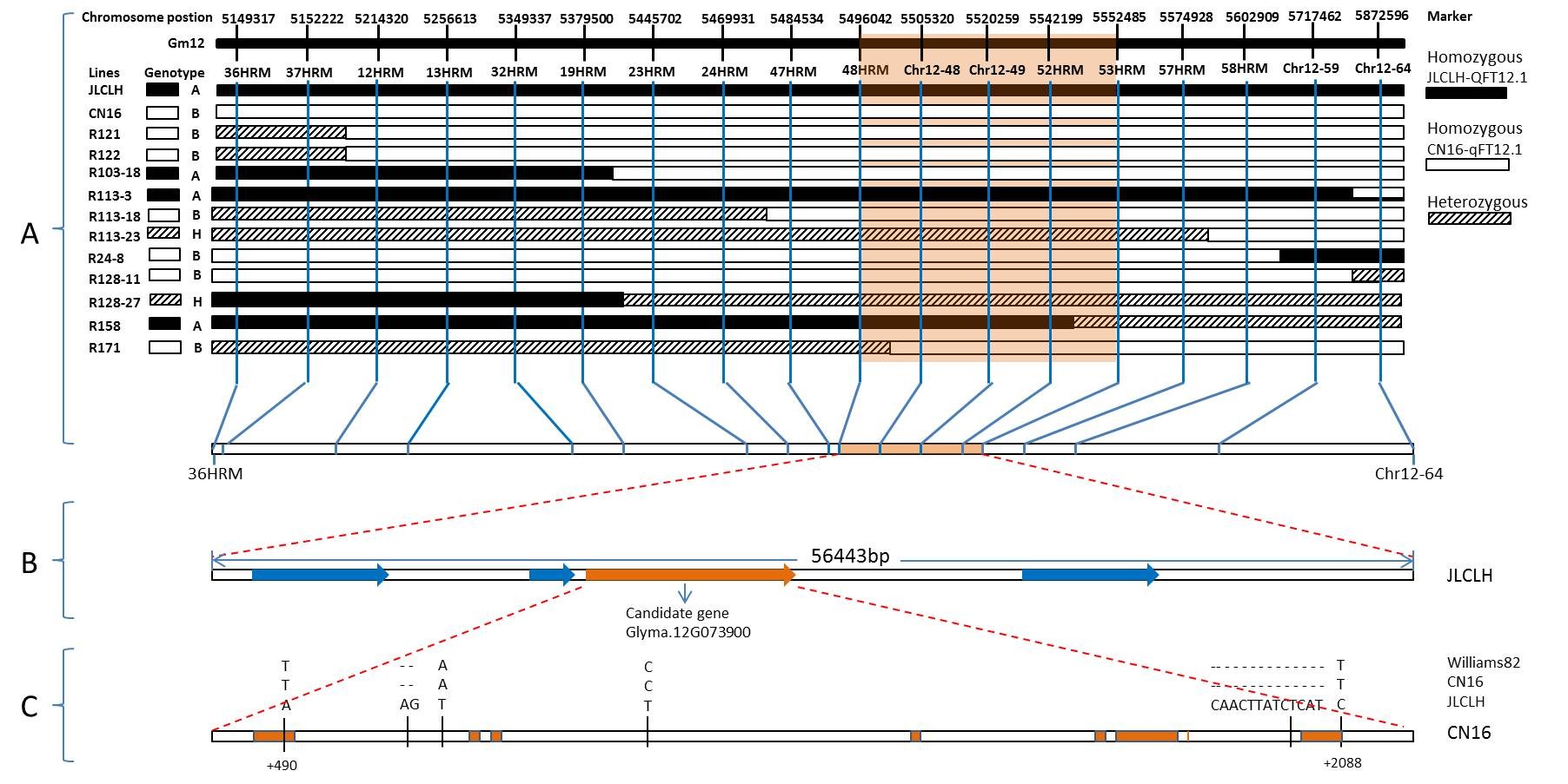 中国科学院东北地理与农业生态研究所大豆分子设计育种实验室夏正俊团队利用栽培品种与农家品种杂交制备了一个遗传群体,在12号染色上定位调控生育期的主效QTL位点qFT12-1,并通过图位克隆法成功地鉴定了调控qFT12-1的生物钟基因GmPRR7。该基因含CCT结构域,属于生物钟调控基因TOC1基因家族。表达分析表明因GmPRR7及同源基因在表达上呈明显的日节律性变化规律。在野生及栽培大豆品种间的等位变异分化表明,GmPRR7与大豆的驯化关系密切。该研究成果揭示了生物钟基因与大豆光周期反应之间的内在联系,丰富了人们对大豆光周期调控机制的认识,同时为大豆分子设计育种提供重要的分子元件。