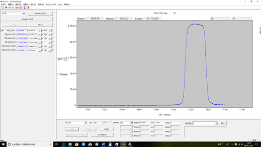 自旋与磁学光束线站(BL07U)通过2小时的努力,入射X射线依次经过白光狭缝、前置镜、单色仪、偏转镜和单色光狭缝后,在Spin分支线的荧光靶上看到光斑,并在电离室里的二极管上测到白光信号。接下来两天,分别在两条分支线的电离室中测到单色光信号,并分别测得了氮气吸收谱,完成首轮调试目标。