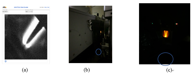 图6:同步辐射光在不同位置处的光斑形状。a: 平面镜M2处,b:傅里叶变换红外光谱仪入口处,c:扫描近场红外显微系统前