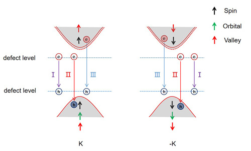 二维过渡金属硫族化合物由于其具有原子级别的厚度、较强的自旋轨道耦合、较大的激子束缚能和可见光区直接带隙的特点,逐渐成为后摩尔时代新材料的研究热点。尤其是单层过渡金属硫族化物提供了一种新的电子自由度——能谷,为未来光电信息处理提供了新的途径。最近,在二维体系中利用缺陷发光实现了单光子光源,这为片上集成量子光学网络提供了一个新的平台。然而,这些二维材料单光子发光中心的来源以及其辐射复合机理依然不是很清楚。