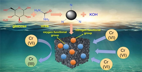氮掺杂多孔碳材料的制备-吸附机理示意图