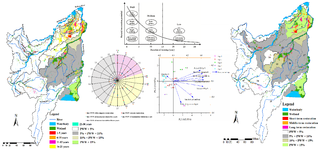 湿地由于其丰富的生物资源,在营养物质循环、水文调控和栖息地保护等方面发挥着重要作用。在过去的一个世纪里,世界各地都发生了不同程度湿地丧失和退化。湿地的退化或丧失会导致生物多样性减少、储水能力降低和土壤侵蚀程度增加。自1950年以来,三江平原湿地面积已经丧失80%,迫切需要开展湿地恢复工作,而高潜力恢复区的确定是湿地恢复规划中的一个关键问题。