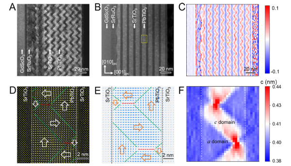 图1.PTO/STO超晶格中的通量闭合畴结构