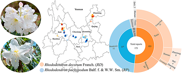图1.云南集市售卖食用杜鹃花的地域分布及当地人对其安全性的传统知识