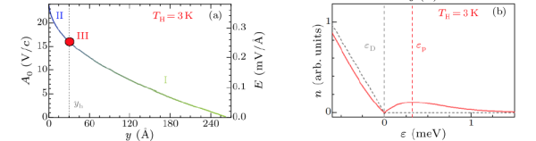 图3.双层黑磷中的费米子史瓦西“黑洞”所需的(a)光场分布及(b)霍金辐射谱