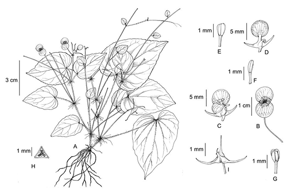 2020年以来,在生态环境部生物多样性调查评估项目、云南省生态监测网络项目、中科院东南亚生物多样性研究中心、国家自然科学基金的支持下,该课题组与上述保护区科研人员在PhytoKeys和Phytotaxa上联合发表了16个新分类群——苦苣苔科的马关全唇苣苔Allocheilos maguanensis、红腺全唇苣苔A. rubroglandulosus、簇花奇柱苣苔Deinostigma fasciculatum、毛果马铃苣苔Oreocharis eriocarpa、珠毛马铃苣苔Oreocharis fulva、撕裂马铃苣苔O. lacerata、文山马铃苣苔O. wenshanensis、短序蛛毛苣苔Paraboea brevipedunculata、千花珠毛苣苔Paraboea myriantha、光珠毛苣苔Paraboea sinensis var. glabrissima、春山报春苣苔Primulina xuansonensis,秋海棠科的荞叶秋海棠Begonia fagopyrofolia、南滚河秋海棠B. nangunheensis、星果秋海棠Begonia satelloides、垂果秋海棠Begonia pendens和马钱科的水晶度量草Mitreola crystallina。这些新发现进一步提升了我国西南边境及越南北部生物多样性的影响力,彰显了我国在国际生物多样性保护和研究中的作用与地位。