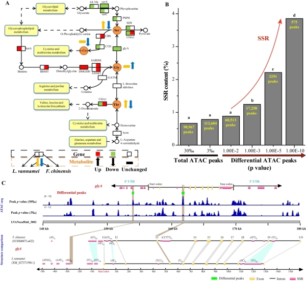 中国明对虾和凡纳滨对虾亲缘关系相近,但它们在盐度适应能力上却存在显著差异。研究首次发现对虾主要通过调控体内自由氨基酸的含量来调节体内的渗透压,而SSR能富集于基因调控区,参与渗透压调节关键通路的基因表达调控。这些基因表达模式的差异可能是引起两种对虾渗透压调控能力差异的重要原因。