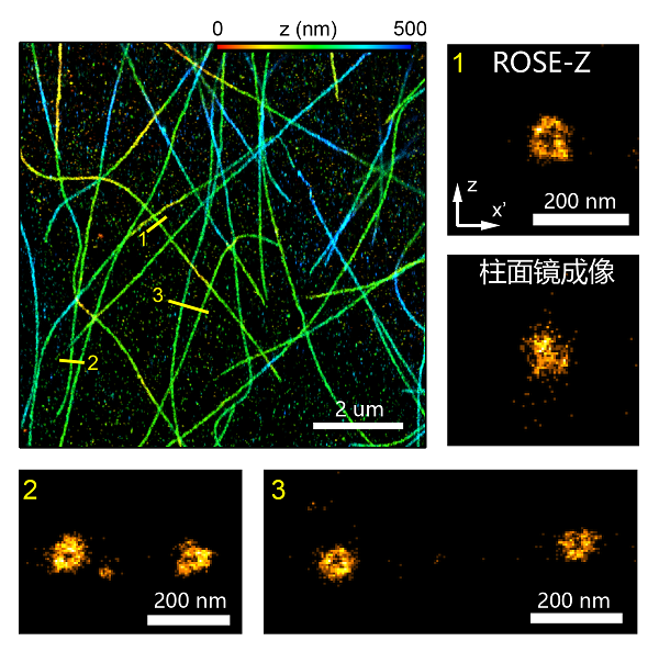中国科学院院士、生物物理所研究员徐涛课题组与研究员纪伟课题组在Nature Methods上,发表了题为Molecular-scale axial localization by repetitive optical selective exposure的研究论文,提出一种轴向单分子定位成像新技术,并研制出新型干涉定位显微镜(ROSE-Z),把单分子定位成像的轴向分辨率提升到纳米尺度。