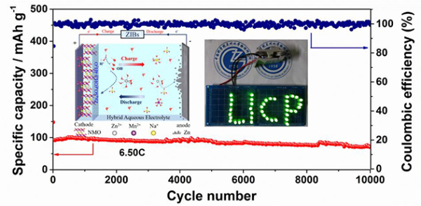 图1.可充电水系锌/钠锰氧化物电池的原理和性能展示