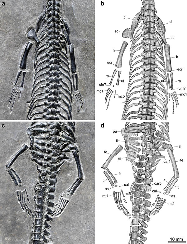 图3.长尾红河龙前后肢部分