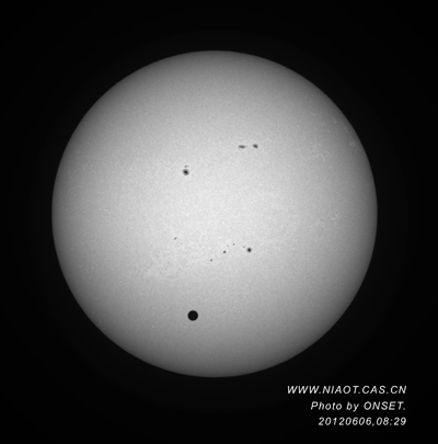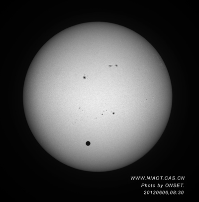 6月6日上午发生了本世纪最后一次“金星凌日”天象,中科院国家天文台南京天文光学技术研究所为南京大学研制的“光学近红外太阳爆发探测望远镜(简称ONSET—Optical-NIR Solar Eruption Explore Telescope)”,在云南抚仙湖观测基地实拍了刚上演结束的世纪奇观——“金星凌日”, 图像清晰,细节可鉴。