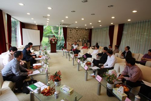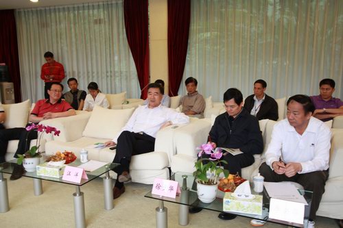 座谈会上,黄宏文首先对华南植物园的概况、近年主要工作进展进行了汇报。报告详细介绍了植物园的发展历史、战略定位与使命、科学研究和成果专利、院地合作与地方经济建设、科普教育与旅游开放、物种保护和资源开发现状。随后,黄宏文就近期院省合作与共建工作提出了思路:第一,共建华南特色生物资源发掘与生物新产品研发平台,谋求中科院、广东省、农业部共建“中国南方转基因中心”;第二,共建中国南方野生资源种质库平台;第三,开展低碳经济与碳收支基础研究合作;第四,共建“广州森林公园群落”;第五,共建高技术产业化孵化企业,促进成果产业化。华南植物园将在院省合作框架下,积极推进新一轮的院省合作,为建设“第三高地”做出应有的贡献。随后,李兴华、张育文、杨荣森、陈勇等先后发言,对华南植物园过去所做的工作表示充分肯定,对该园提出的院地共建设想表示高度认可,并表示积极开展这些院地合作项目,与华南植物园开展全面合作并给予支持。