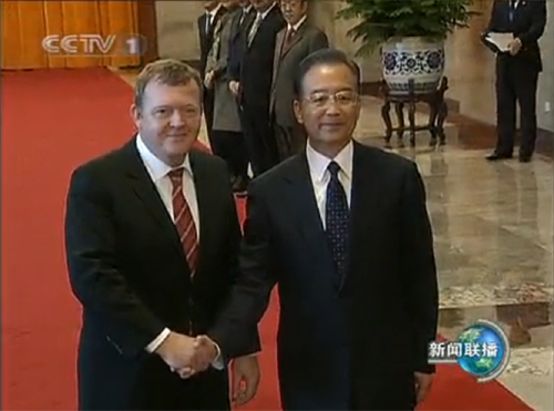 4月12日上午,在温家宝总理和丹麦首相拉尔斯·拉斯穆森的共同见证下,中国科学院常务副院长兼研究生院院长白春礼与丹麦科技创新部部长Charlotte Sahl-Madsen、丹麦高校联盟主席Jens Oddershede在人民大会堂签署了《中国科学院研究生院中国-丹麦科研教育中心合作伙伴协议》和《中国科学院研究生院雁栖湖园区中国-丹麦科研教育中心建设、维护和运行协议》。中国科学院研究生院党委书记邓勇,丹麦科技创新部及相关大学负责人出席签字仪式。