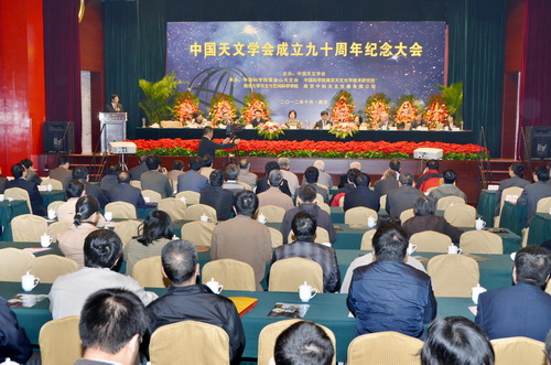 10月30日,中国天文学会成立90周年纪念大会在南京钟山宾馆举行。中国科学院副院长李静海院士、中国科协副主席程东红、江苏省副省长何权出席并致辞。