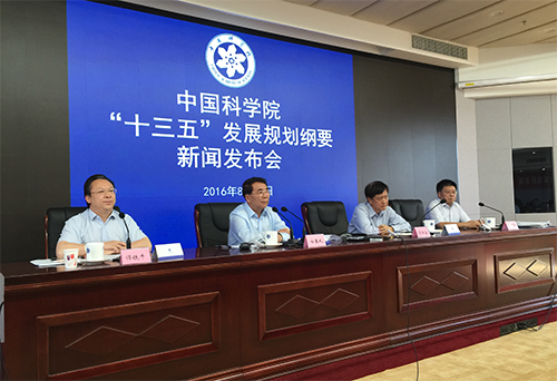 8月31日下午,中国科学院在北京召开新闻发布会,正式发布《中国科学院“十三五”发展规划纲要》(以下简称《规划纲要》)。中科院院长、党组书记白春礼出席发布会,并介绍了编制“十三五”规划的总体考虑和主要目标;副院长、党组成员李静海介绍了《规划纲要》的编制过程和主要内容;副院长、党组成员谭铁牛主持发布会。