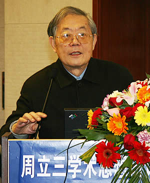 中国科协名誉主席周光召、中科院党组副书记方新出席会议。周光召在讲话中回顾了中国科学院国情分析研究的起因和开端,介绍了周立三领导的国情研究小组的主要活动和学术贡献,高度评价了周老一切从实际出发,尊重科学、实事求是、坚持科学真理、甘于奉献、淡泊名利的精神,特别强调了周老高尚的爱国主义情操和深邃的战略思维能力是他做出如此重要贡献不可或缺的基础。他指出,中国不可能沿着发达国家的老路实现现代化,必须走我们自己的发展道路,这就要立足中国国情,做出符合客观规律的科学决策。