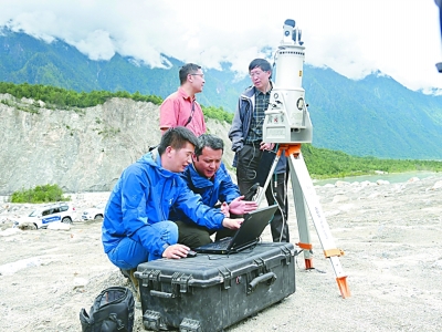 山地所的科研人员使用三维激光扫描仪检测滑坡体。本报记者 齐芳摄/光明图片