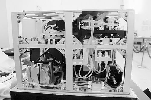 干细胞培养箱是技物所5个生命科学载荷中最大且结构复杂的一个。它如同迷你冰箱般大小,里面装着1.5升的液体、12条管路和1台显微镜,分为3层,重量达到35.75公斤。