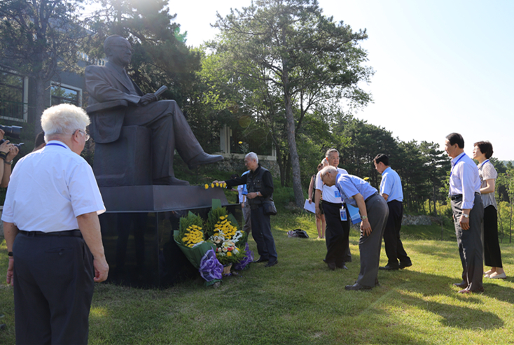 清晨7点,参会人员在大珩纪念园向王大珩先生的铜像敬献了鲜花,表达了对先生的怀念。随后,参会人员来到我国唯一的国家级光学专题科技馆——中国光学科技馆,依次参观了奇妙之光、光的探索、光的时代、光彩世界、千年光辉等主展厅。
