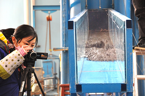项目执行两年,期间组建研究团队,从一个被动的参与者成为一个主动的规划者,尝试新的研究方法,规划研究路线,制定年度计划,一切都在紧锣密鼓中进行。基于前期水利部项目余荫,建在磨子沟的监测预警系统持续多年的数据和建在宗渠沟的野外试验平台得到的试验数据,我们得以探讨各因素对于泥石流坝体形成的影响,再在室内又开展了一年的室内实验,以分析泥石流入汇主河的系列典型现象,并且最终建立泥石流坝体主河无水堆积和主河有水堆积的形态参数计算公式,量化泥石流入汇堆积坝体分布规律。基于此,选择磨子沟为典型示范泥石流沟,预估磨子沟泥石流形成的堰塞体,计算坝址流量过程线和洪水演进参数,溃决洪水影响范围涉及7个村县和3个水电站都针对性的做了应急组织系统设计,最终将预案交给了汶川县农业畜牧和水务局,期望在以后的汛期加以运用。