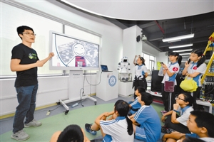 5月16日,2015年度中国科学院深圳先进技术研究院公众科学日暨南山少年创新院首次创客活动在先进院举行。本次活动以“创客教育培养创新精神”为主题,通过创客项目展示直观呈现创客文化。先进院邀请南山少年创新院的同学们开展“小创客”项目路演,“大小创客结对子”等活动,让孩子们在交流与学习中感受创新魅力。图为公众科学日让学生们面对面接触创客文化。