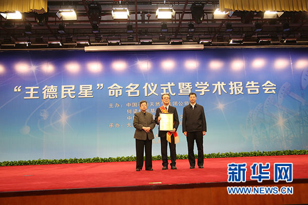 4月12日上午,“王德民星”命名仪式暨学术报告会在大庆油田隆重举行。中国工程院院士,中国油田分层开发和化学驱油技术的奠基人王德民,经何梁何利基金评选委员会推荐,中国科学院紫金山天文台申请,国际小行星中心命名委员会批准:国际编号为210231号小行星,正式命名为“王德民星”。