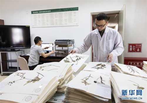 7月4日,在中科院植物研究所植物标本馆,工作人员整理待数字化的植物标本。新华社记者金立旺摄