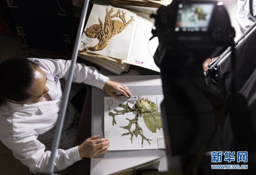 7月4日,在中科院植物研究所植物标本馆,工作人员用数码相机拍摄一份植物标本。新华社记者金立旺摄