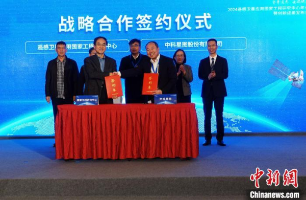 2024遥感卫星应用国家工程研究中心年会暨创新成果发布会上,举行战略合作签约仪式。中新网记者 孙自法 摄