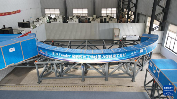 4月11日拍摄的国际热核聚变实验堆(ITER)装置馈线系统核心零部件。 新华社记者 周牧 摄