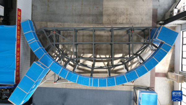 这是竣工待交付的最后一套国际热核聚变实验堆(ITER)超导磁体校正场线圈内馈线部件(无人机照片,4月11日摄)。 新华社记者 周牧 摄