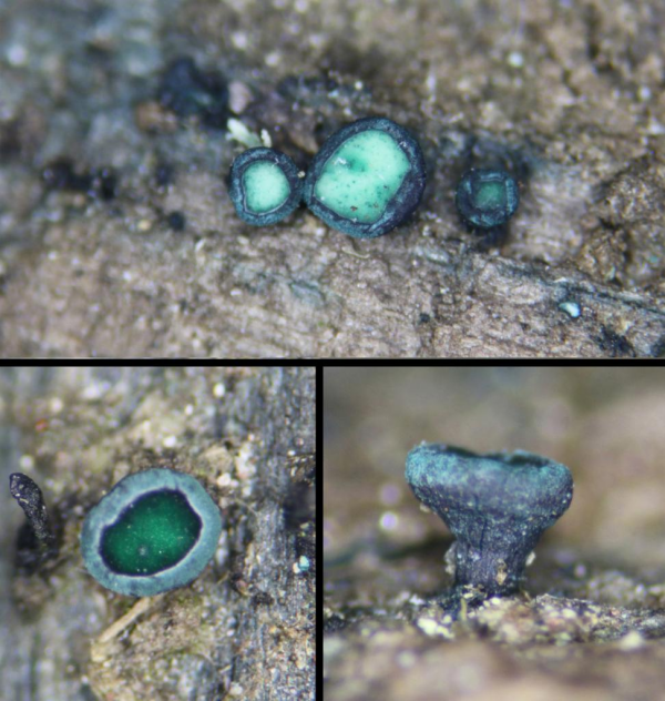 论文通讯作者、中国科学院昆明植物研究所正高级工程师赵琪介绍:“这次发现的四个物种同属于绿杯菌属,这一家族因为能产生名为‘木青素’的色素,使得它们看上去蓝蓝绿绿的,很像科幻电影或动画片中的真菌,因此备受人们关注。”