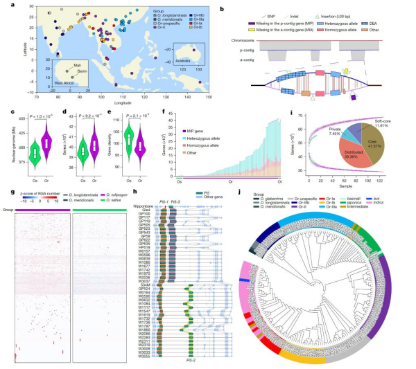研究团队整合了具有代表性的129份普通野生稻和16份亚洲栽培稻资源,进行高质量的基因组测序和从头组装,构建了一个可以覆盖野生稻和栽培稻全面遗传景观的泛基因组图谱。
