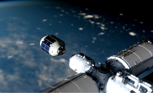 轻舟货运飞船与中国空间站对接示意图。(中国科学院微小卫星创新研究院供图)