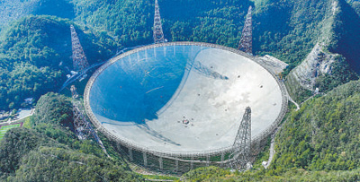 “中国天眼”全景(维护保养期间拍摄)。新华社记者 欧东衢摄
