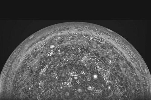 朱诺号拍摄的木星南极地区图像。图片来源:NASA