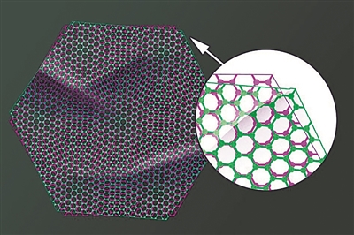 图中两片石墨烯以略微偏移的“魔角”堆叠在一起,既可以成为绝缘体,也可以成为超导体。图片来源:美国麻省理工学院