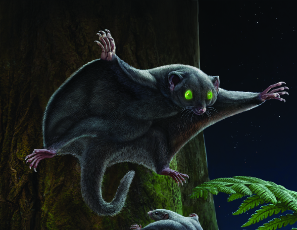 夜行的侏罗纪哺乳动物树贼兽生有深色皮毛。图片来源:Chuang Zhao、Ruoshuang Li