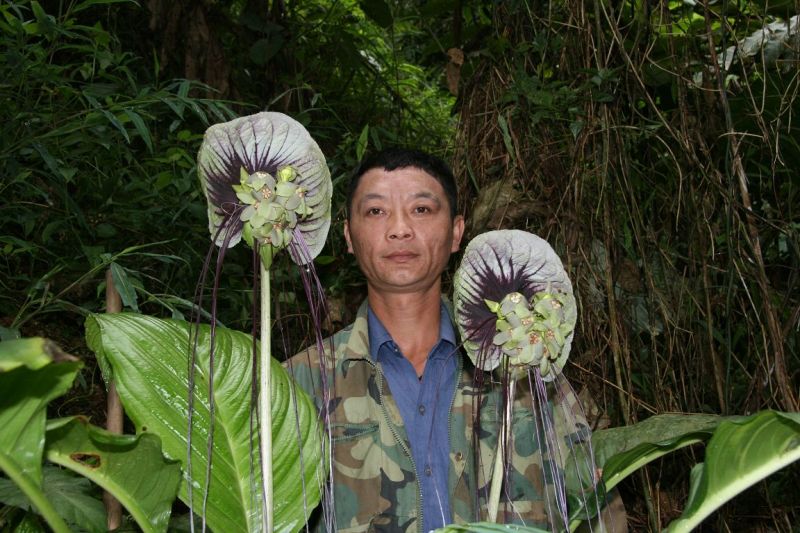 正是这奇特的花使我与老虎须结下了不解之缘。长着蝙蝠状大苞片和胡须状小苞片的老虎须引起了我们强烈的好奇心——这些花部结构到底有什么用?是用来威胁胆敢来犯的天敌呢?还是用来吸引传粉动物?如果是吸引传粉动物,又会吸引什么动物为其传粉呢?于是,在2001年春,刚刚步入科研生涯的我在老师和同事们的帮助下开始了我的第一个科研课题。